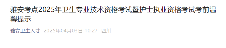 【四川雅安】2025年衛(wèi)生資格考試暨護士執(zhí)業(yè)資格考試考前溫馨提示