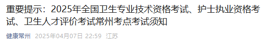 【江蘇常州】2025年全國(guó)衛(wèi)生專業(yè)技術(shù)資格考試、護(hù)士執(zhí)業(yè)資格考試、衛(wèi)生人才評(píng)價(jià)考試常州考點(diǎn)考試須知