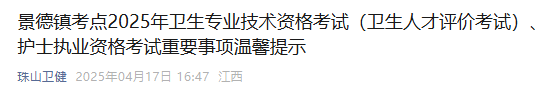 【江西景德鎮(zhèn)】2025年衛(wèi)生專業(yè)技術(shù)資格考試、護(hù)士執(zhí)業(yè)資格考試重要事項(xiàng)溫馨提示