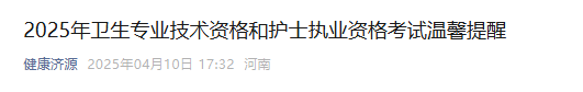【河南濟源】2025年衛(wèi)生專業(yè)技術資格和護士執(zhí)業(yè)資格考試溫馨提醒