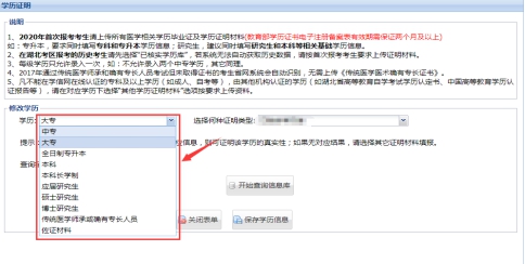 1.請在“添加學(xué)歷信息”,上傳本人所有醫(yī)學(xué)相關(guān)學(xué)歷證書,如專升本學(xué)歷考生,需上傳??坪捅究茖W(xué)歷證書;碩士以上學(xué)歷考生,需上傳學(xué)歷和學(xué)位證書;執(zhí)業(yè)助理升執(zhí)業(yè)類成教學(xué)歷考生,需上傳第一學(xué)歷和職后學(xué)歷等相關(guān)情況。