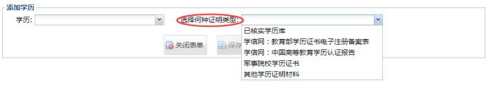 2.首先選擇自己的學(xué)歷 ,然后選擇對應(yīng)的學(xué)歷真實性證明材料。