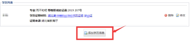 5.上傳完畢一個學(xué)歷證明后,可再次點擊“添加學(xué)歷信息”按鈕上傳其他學(xué)歷證明。