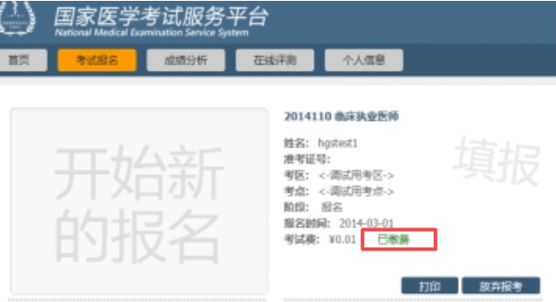 (三)完成繳費。考生最終繳費成功的標志,以國家醫(yī)學考試服務平臺考生服務端中的“已繳費”為準。