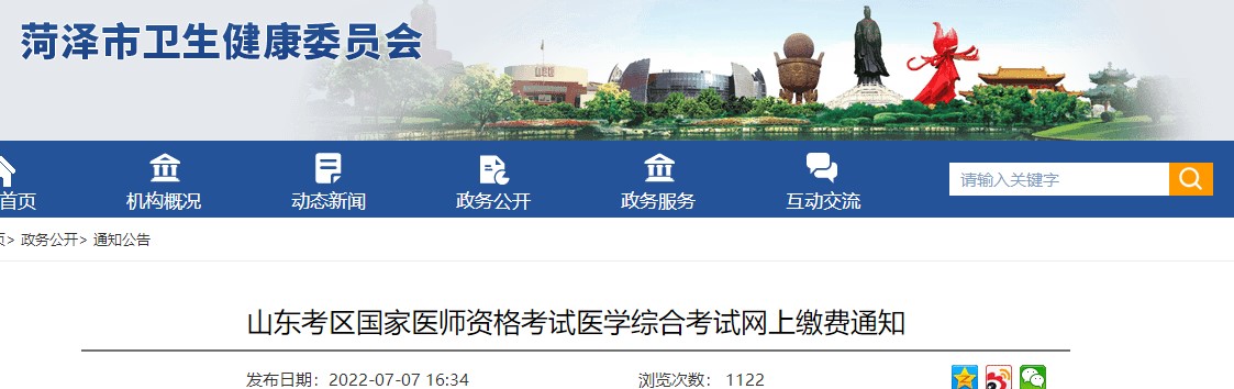 2022年鄉(xiāng)村全科助理醫(yī)師考試菏澤考點(diǎn)網(wǎng)上繳費(fèi)7月22日截止