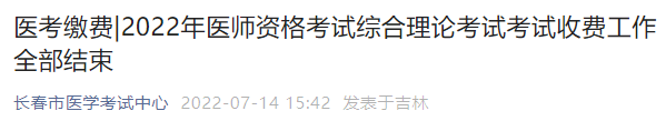 長春考點2022年鄉(xiāng)村全科助理醫(yī)師綜合筆試?yán)U費結(jié)束通知