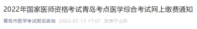 根據(jù)省醫(yī)考辦的工作安排,2022年青島考點國家醫(yī)師資格考試醫(yī)學(xué)綜合考試網(wǎng)上繳費工作有關(guān)事項通知如下: