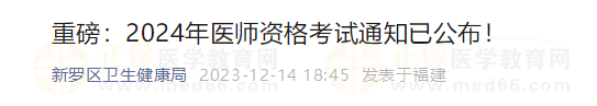 重磅:2024年醫(yī)師資格考試通知已公布!福建新羅區(qū)