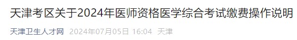 天津考區(qū)關(guān)于2024年醫(yī)師資格醫(yī)學(xué)綜合考試?yán)U費操作說明