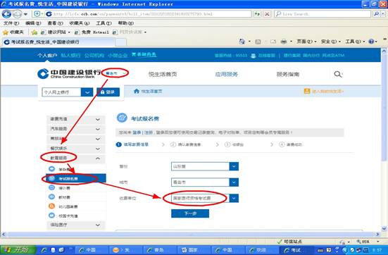 2.登錄網上銀行,在“悅生活”→“應用服務”→“教育服務”→“考試報名費”“項目下完成繳費