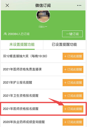 第三步、訂閱"2021醫(yī)師資格考試報(bào)名提醒"提醒功能;