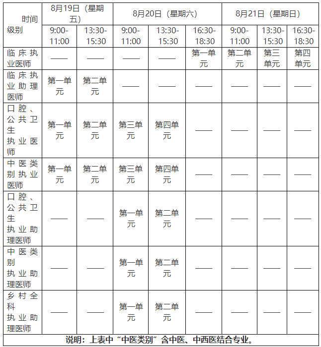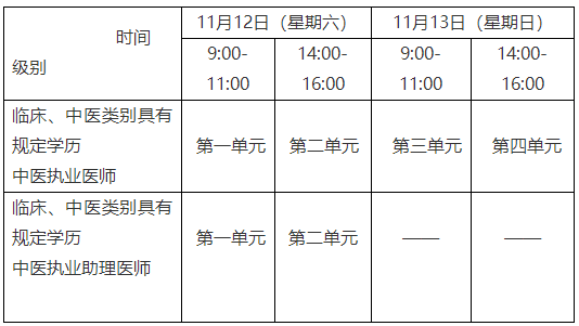 醫(yī)學(xué)綜合考試“一年兩試”試點(diǎn)第二次考試時(shí)間如下: