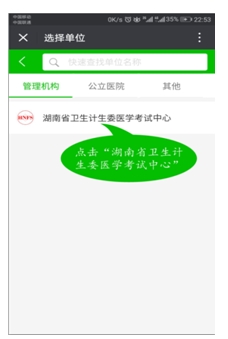 4.選擇“管理機構(gòu)”下的“湖南省衛(wèi)生計生委醫(yī)學(xué)考試中心”;