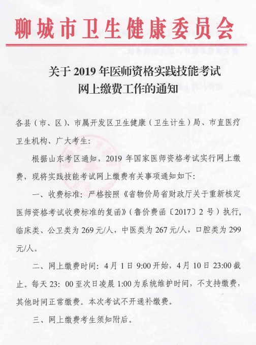 根據(jù)山東考區(qū)通知,2019年國(guó)家醫(yī)師資格考試實(shí)行網(wǎng)上繳費(fèi),現(xiàn)將實(shí)踐技能考試網(wǎng)上繳費(fèi)有關(guān)事項(xiàng)通知如下:
