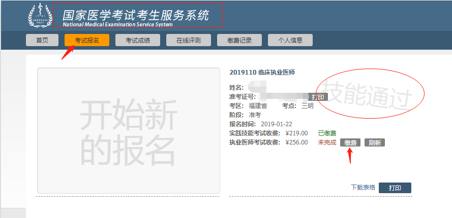 通過實(shí)踐技能考試的考生即可在查詢頁面進(jìn)行醫(yī)學(xué)綜合筆試(一試)繳費(fèi),繳費(fèi)方式同實(shí)踐技能考試?yán)U費(fèi)(具體如下圖)。