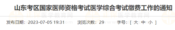 2023年山東考區(qū)濟寧考點國家醫(yī)師資格考試醫(yī)學綜合考試費用全部實行網上統(tǒng)一繳納,不提供其他繳費途徑。