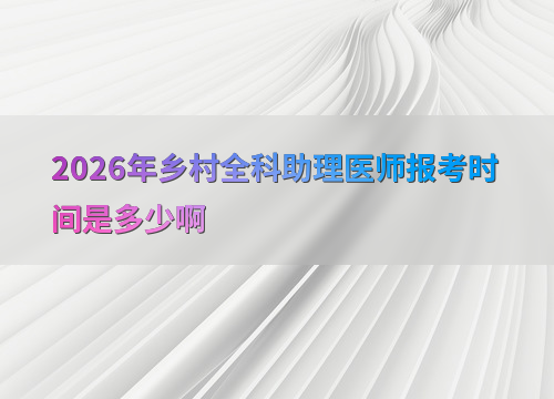 預(yù)計(jì)2026年鄉(xiāng)村全科助理醫(yī)師考試報(bào)名時(shí)間為1月至2月,具體日期請(qǐng)關(guān)注國(guó)家醫(yī)學(xué)考試網(wǎng)公告。