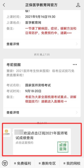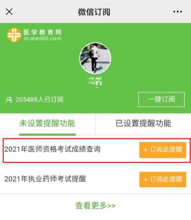 第三步、訂閱"2021醫(yī)師資格考試成績(jī)查詢"+訂閱此功能;即可完成免費(fèi)消息提醒訂閱!成績(jī)時(shí)間公布后,網(wǎng)校工作人員會(huì)及時(shí)為您推送微信消息!