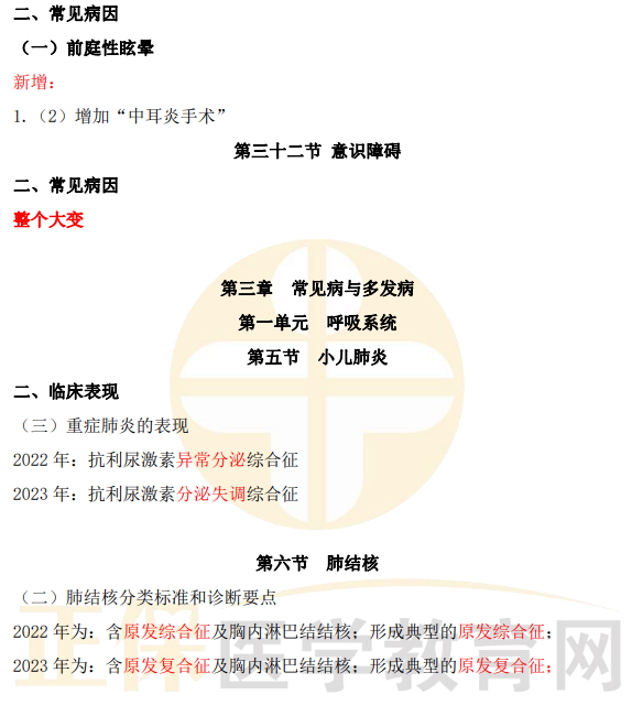 2023年鄉(xiāng)村全科助理醫(yī)師資格考試官方教材現(xiàn)已發(fā)布!與2022年相比有部分知識(shí)點(diǎn)變動(dòng)(查看說明>),“2023年鄉(xiāng)村全科助理醫(yī)師《全科醫(yī)療》教材變動(dòng)細(xì)則”內(nèi)容如下,請(qǐng)廣大鄉(xiāng)村全科助理醫(yī)師考生參考:
