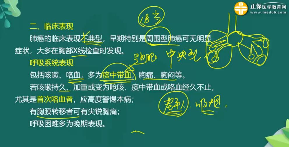 肺癌大多數(shù)起源于支氣管黏膜上皮,因此也稱支氣管肺癌。肺癌發(fā)病率目前位居惡性腫瘤首位。肺癌的臨床表現(xiàn)、診斷是需要重點(diǎn)掌握的,下面我們就來看看吧。