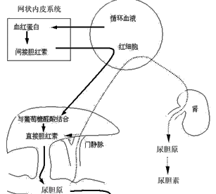 1.溶血性黃疸 紅細胞破壞非結合膽紅素形成。