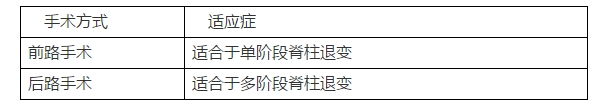 解析: ①頸椎病的手術(shù)入路見(jiàn)下表。②該患者表現(xiàn)為C5——6間盤(pán)突出,即單階段脊柱退變,故首選前路手術(shù)。