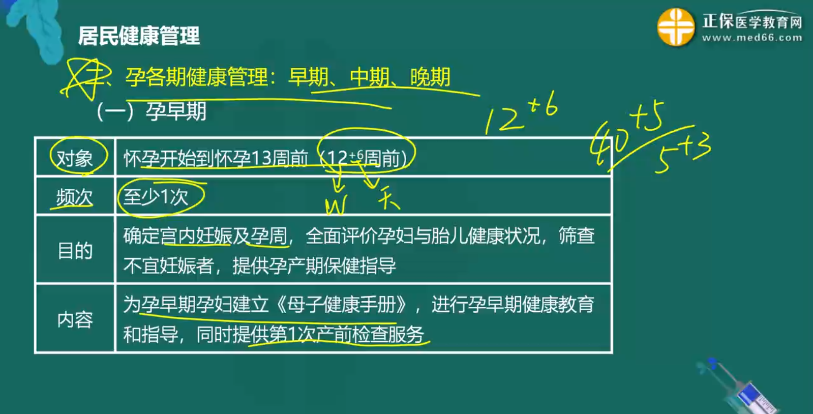 孕期對孕婦和胎兒的管理很重要,早、中、晚各期健康管理服務(wù)的對象、目的、內(nèi)容各有不同,請根據(jù)各期的特點去區(qū)分記憶。