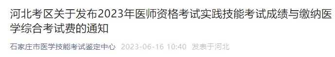實踐技能考試通過的考生(含2023年技能免試考生),請于6月20日至6月25日24:00前登錄國家醫(yī)學考試網(wǎng),繳納醫(yī)學綜合考試費。逾期未繳費的視為自動放棄考試資格。