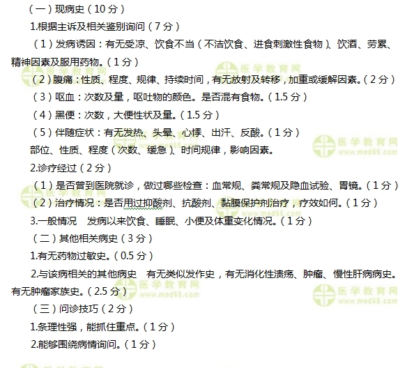 以上就是“鄉(xiāng)村全科助理醫(yī)師實(shí)踐技能病史采集試題解析:嘔血與便血”的全部?jī)?nèi)容,希望今天的考試答題得分點(diǎn)可以幫助大家在備考時(shí)掌握大致得分點(diǎn)!如果各位考生需要更多考試大綱和課程輔導(dǎo),請(qǐng)持續(xù)關(guān)注醫(yī)學(xué)教育網(wǎng)鄉(xiāng)村全科執(zhí)業(yè)助理醫(yī)師頻道!