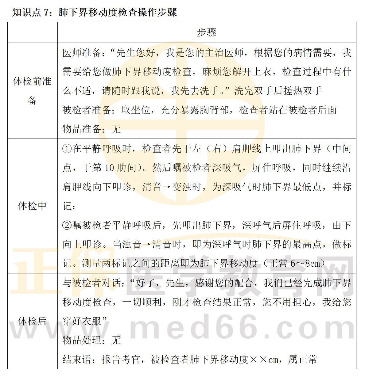 2023鄉(xiāng)村助理醫(yī)師實(shí)踐技能考點(diǎn)<肺下界移動(dòng)度檢查操作步驟>總結(jié)表