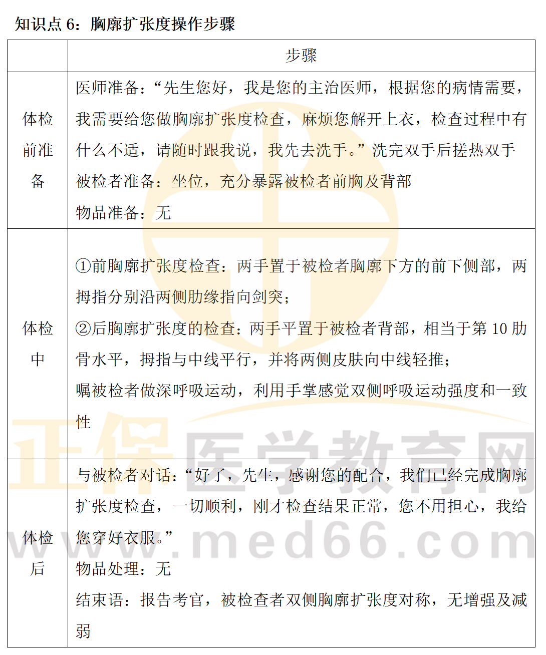一表搞定鄉(xiāng)村助理醫(yī)師技能知識(shí)點(diǎn)胸廓擴(kuò)張度操作步驟