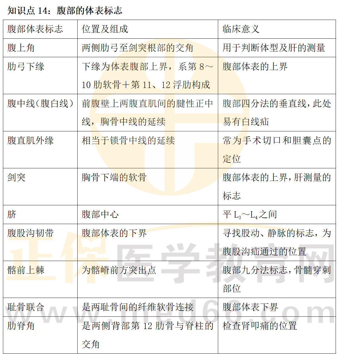 腹部的體表標(biāo)志考點(diǎn)總結(jié)表