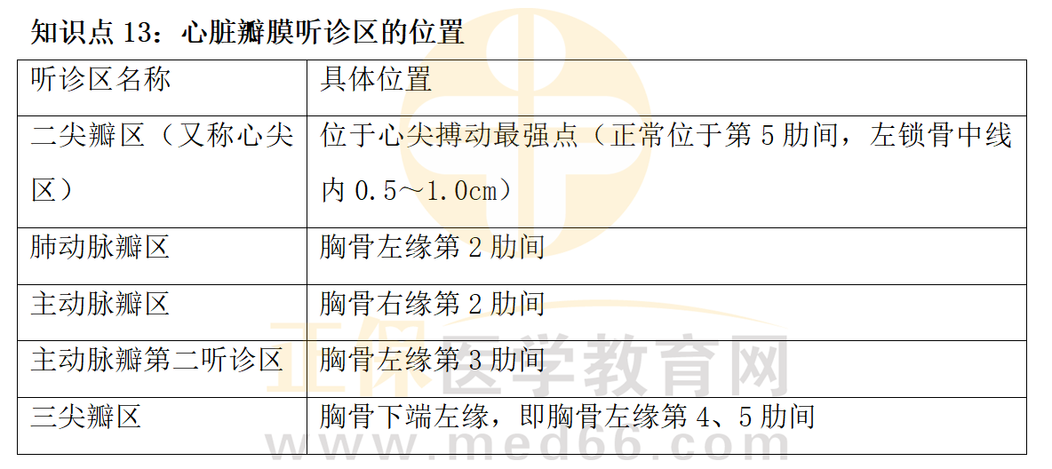 鄉(xiāng)村助理醫(yī)師實踐技能考點<心臟瓣膜聽診區(qū)的位置>總結(jié)表