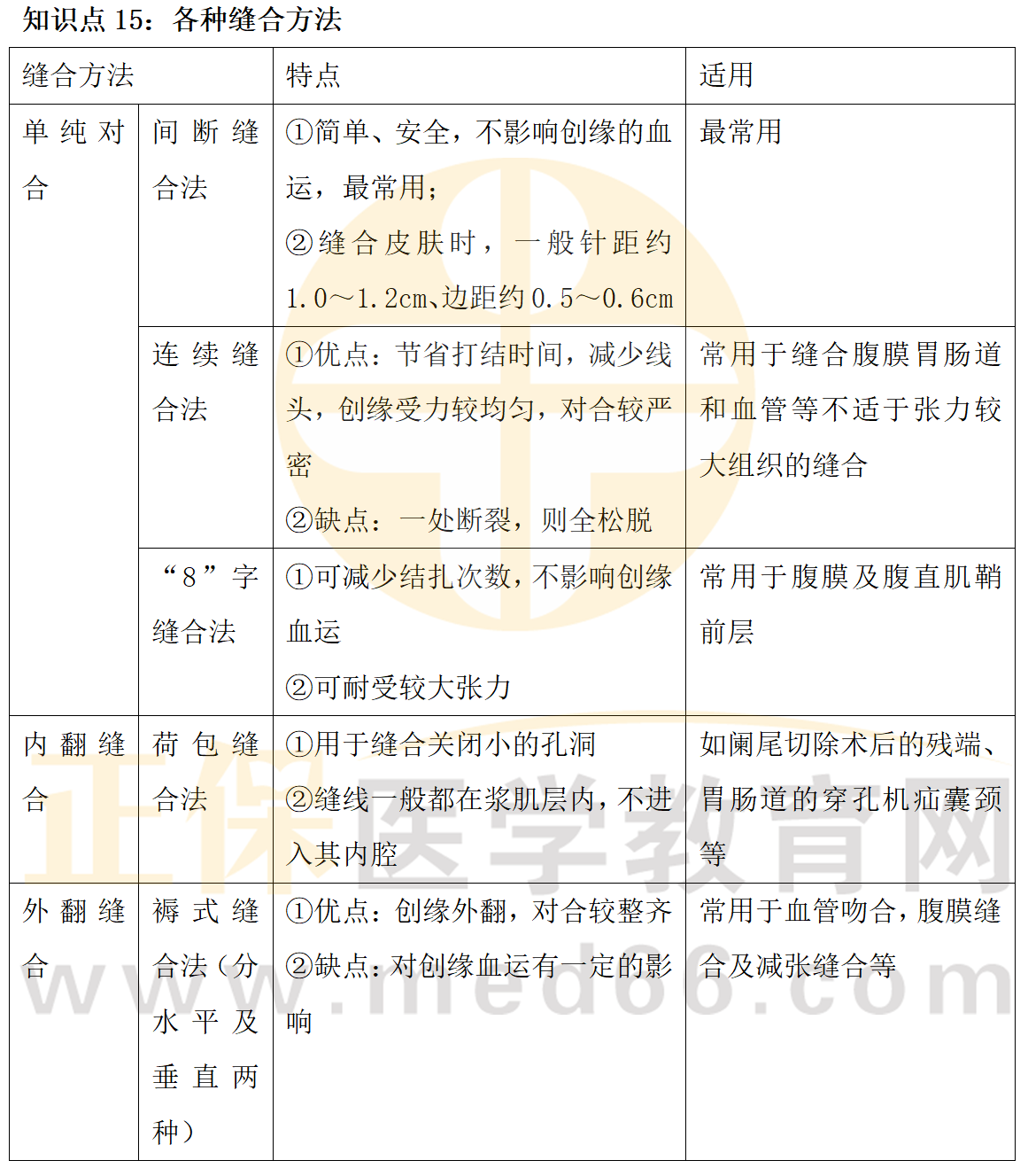 一表搞定鄉(xiāng)村助理醫(yī)師技能知識(shí)點(diǎn)各種縫合方法
