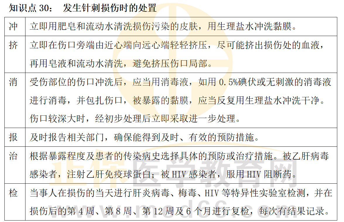 一表搞定鄉(xiāng)村助理醫(yī)師技能知識點(diǎn)發(fā)生針刺損傷時(shí)的處置