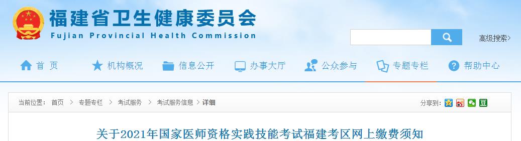 福建考區(qū)2021年國家醫(yī)師資格實踐技能考試網(wǎng)上繳費(fèi)須知發(fā)布!