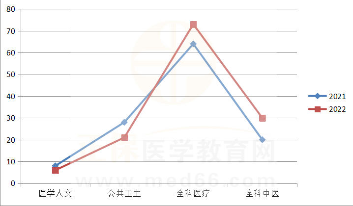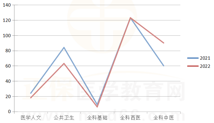 3.再通過國家醫(yī)師資格考試指導(dǎo)用書來分析。2022年官方教材公布的醫(yī)學(xué)綜合考試內(nèi)容為:醫(yī)學(xué)人文(占5%~10%)、公共衛(wèi)生(占30%~35%)、全科醫(yī)療(占55%~65%),其中,中醫(yī)應(yīng)用占30%。實際考試:醫(yī)學(xué)人文(占6%)、公共衛(wèi)生(占21%)、全科醫(yī)療(占73%),其中,中醫(yī)應(yīng)用占30%。所以,國家對中醫(yī)的臨床應(yīng)用重視度增加,公衛(wèi)的重視度相對下降。