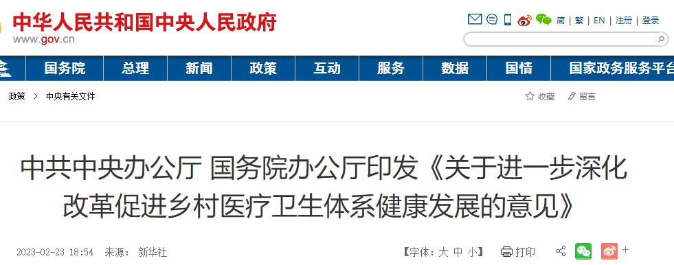 《關(guān)于進(jìn)一步深化改革促進(jìn)鄉(xiāng)村醫(yī)療衛(wèi)生體系健康發(fā)展的意見》通知