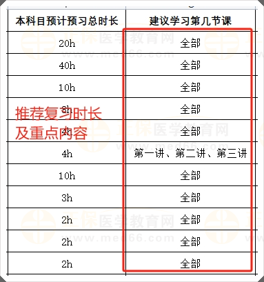 2、科目預(yù)計復(fù)習(xí)時長以及科目重點圈畫