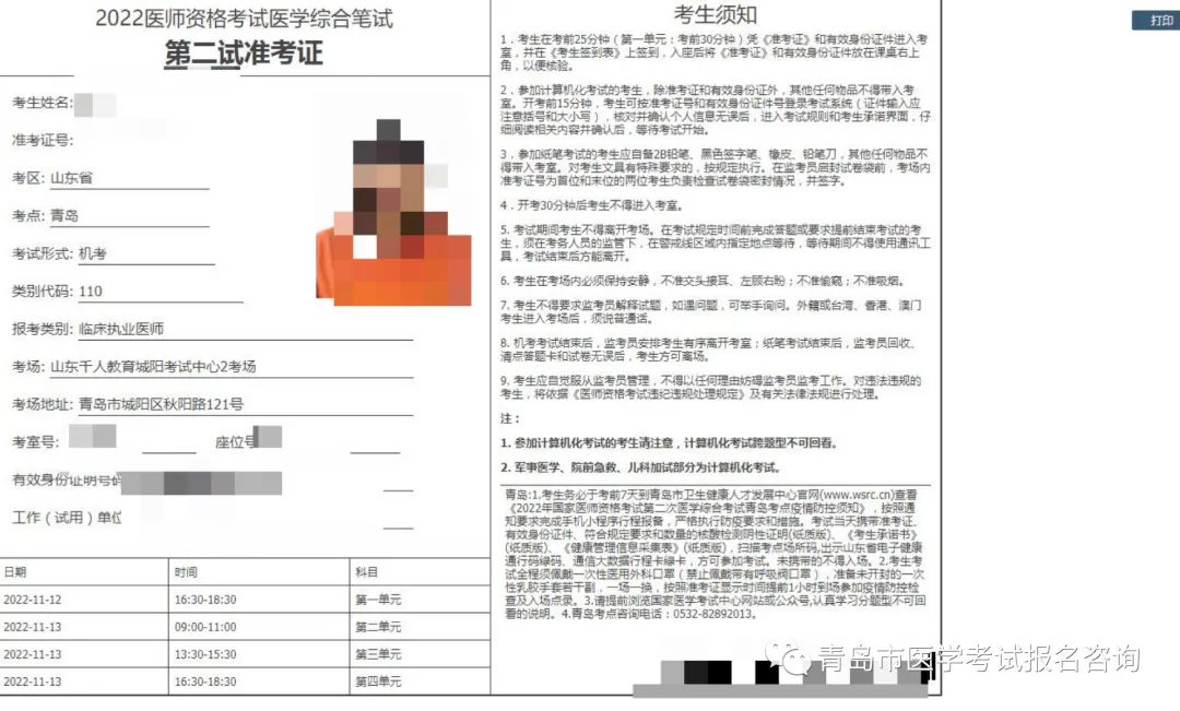 2022年國(guó)家醫(yī)師資格綜合筆試(二試)青島考點(diǎn)11月8日準(zhǔn)考證開始打印