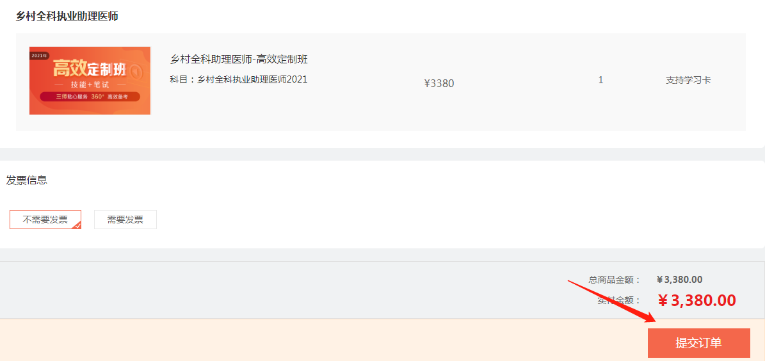 第二步:在訂單頁確認無誤后,點擊“提交訂單”;