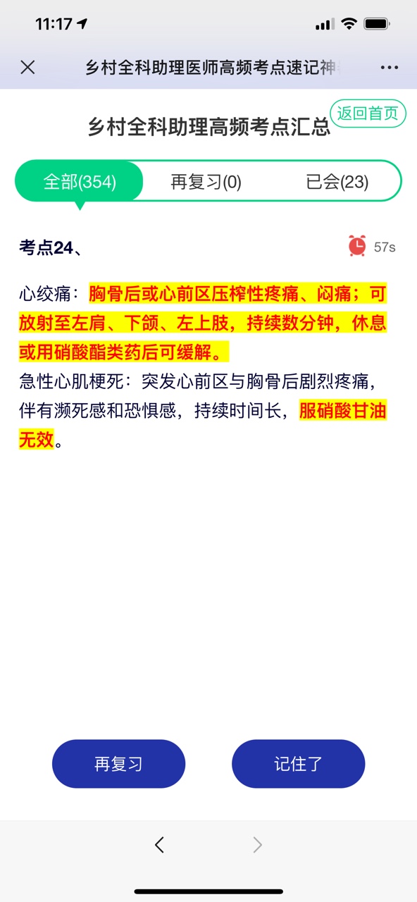 速記考點(diǎn)是將各科考試內(nèi)容進(jìn)行提煉匯總,所以全是精華,沒有多余的點(diǎn),也不會(huì)錯(cuò)過重點(diǎn)知識(shí)點(diǎn)。開啟頭腦風(fēng)暴,挑戰(zhàn)60s攻克一個(gè)考點(diǎn)!學(xué)習(xí)完60s后,如果覺得考點(diǎn)掌握得不夠牢固,可以點(diǎn)擊底部的“再?gòu)?fù)習(xí)”按鈕,下次再進(jìn)行學(xué)習(xí)。如下圖所示,可以將考點(diǎn)歸納分類為“再?gòu)?fù)習(xí)”“記住了”“已會(huì)”三種。