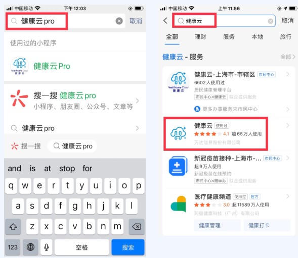 第一步:打開微信搜索“健康云pro”,或打開支付寶搜索“健康云”小程序。
