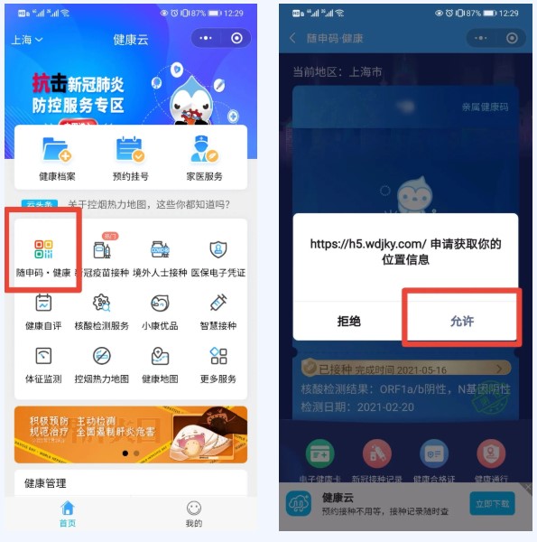 第二步:點擊“隨申碼?健康”,允許獲取信息。