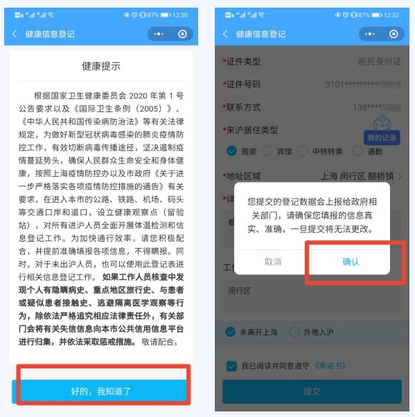 第五步:健康信息登記,并確認信息真實、準確。