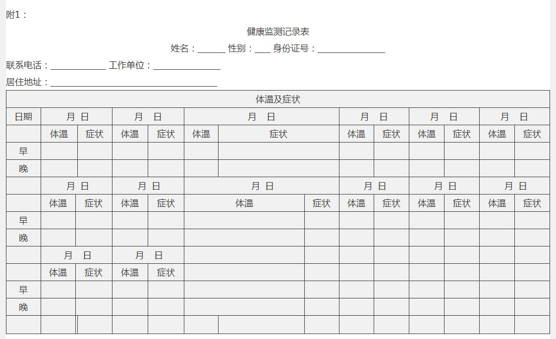 3.本人填寫的《健康監(jiān)測記錄表》(附件1);