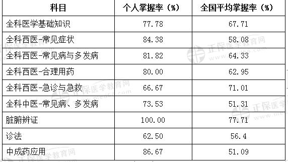 2021年鄉(xiāng)村全科助理醫(yī)師考取177分學(xué)員的各科目掌握情況