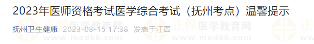 江西撫州考點(diǎn)2023年鄉(xiāng)村助理醫(yī)師資格考試醫(yī)學(xué)綜合考試有關(guān)事項(xiàng)公告