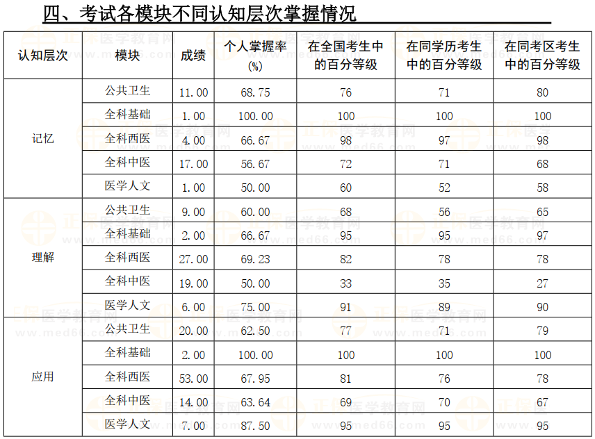 根據(jù)近幾年的考試出題方向看:在臨床醫(yī)學(xué)方面題型的分?jǐn)?shù),近幾年都是最高的,出題本就貼近臨床思維。見下方某考生的成績分析報(bào)告: