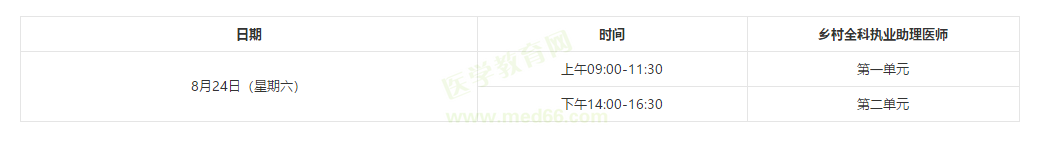 二、2019年鄉(xiāng)村全科執(zhí)業(yè)助理醫(yī)師綜合筆試考試時(shí)間為8月24日: